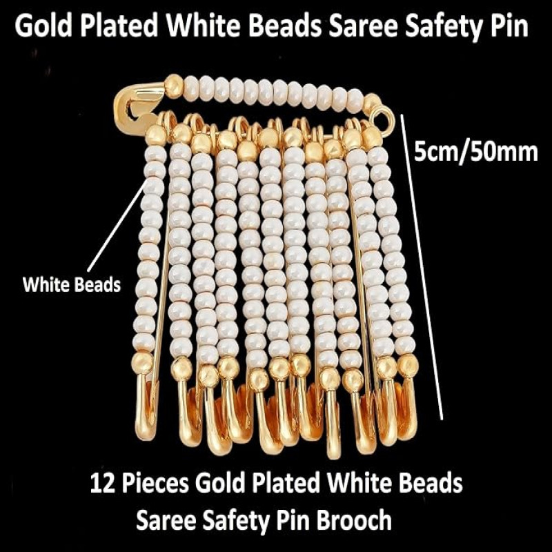 ✓ Beautiful Designer set of White Beads Safety Saree Pin Brooch which Matches with all Sarees plates, Dupatta, lehanga choli ,Chunri, Odhni or scrafs and hijabs.
