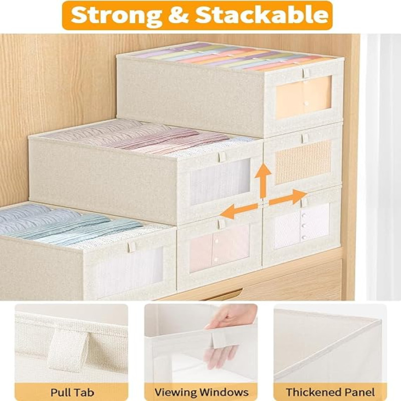 【LIGHTWEIGHT & DURABLE】These linen closet storage boxes are made of high-quality natural fiber fabric, which is sturdy and breathable. The characteristics of linen fibers make these storage boxes generally lighter than those made from traditional materials, and linen is also durable, allowing for long-term use. Additional, the bottom of the organization closet is feactured with a 2.5mm fiberboard, ensuring the basket stays upright even when empty.
