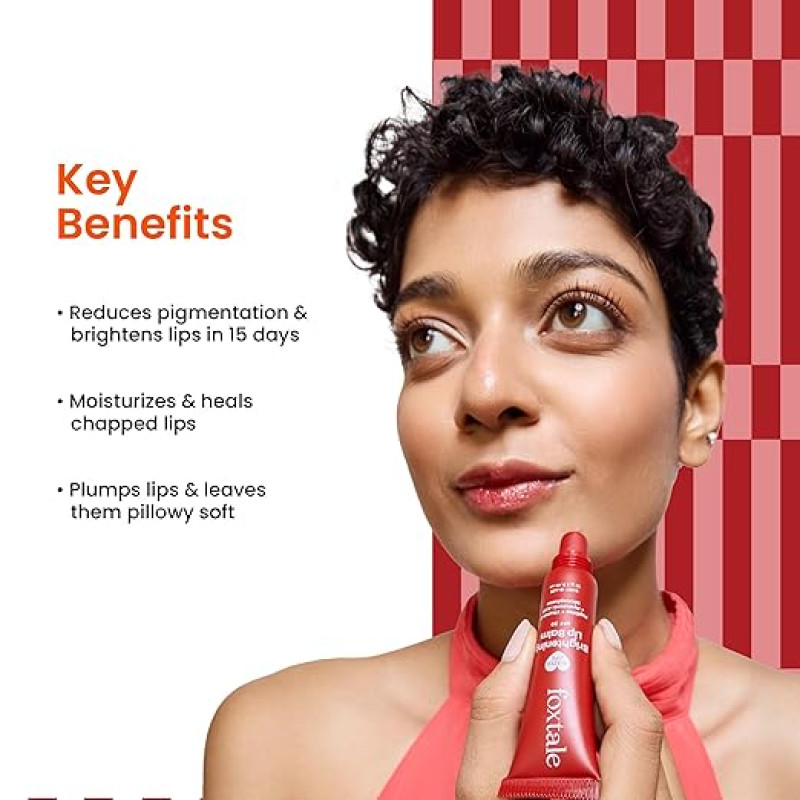Foxtale SPF 30 Brightening Lip Balm for Dark Lips with Peptides & Vitamin C | Brightens Pigmented Lips | Hydrates Lips | SPF Lip Balm - Ruby Glaze 12gm