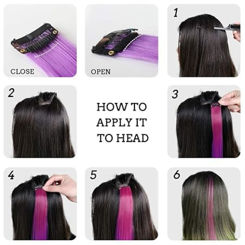 【Package Include】 You will receive 6pcs hair extensions in different colors. The hair extension size is 53cm*3cm.