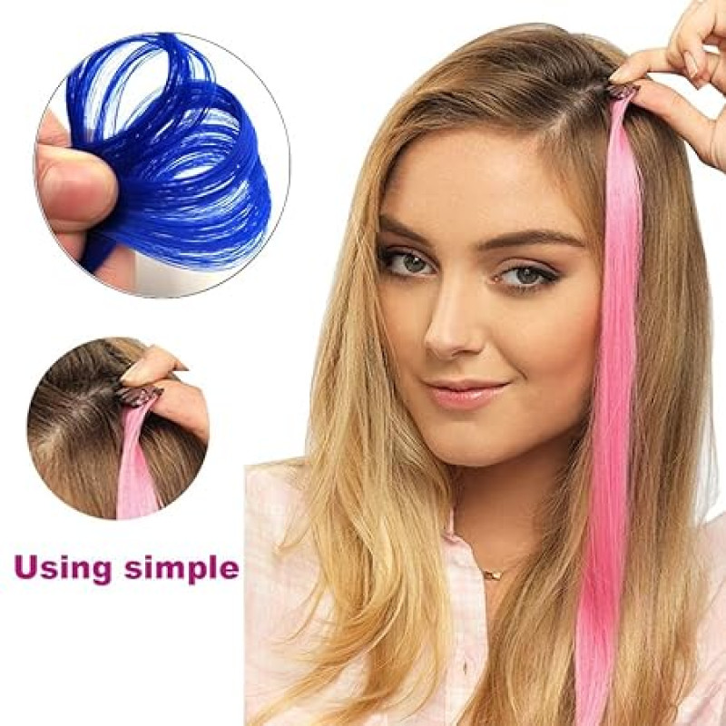 【Colored Hair Extensions】 This rainbow hair extension synthetic hairpiece is long enough to trim and adjust the length of your hair, you can adjust the hair length according to your personal needs, and they can be reusable.
