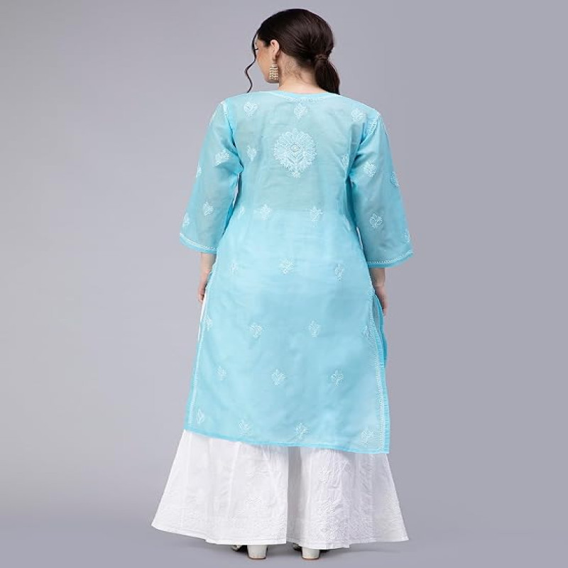 Hand Embroidered Lucknowi Chikankari Cotton Kurta Kurti for Women
