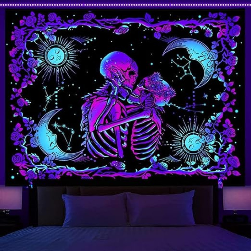 HASTHIP UV Luminous Skull Tapestry, UV Reactive Glow in The Dark, The Kissing Lovers Tapestry, Skeleton Wall Art for Bedroom Living Room, Wall Hanging Decor (51inch x 59inch) Polyester