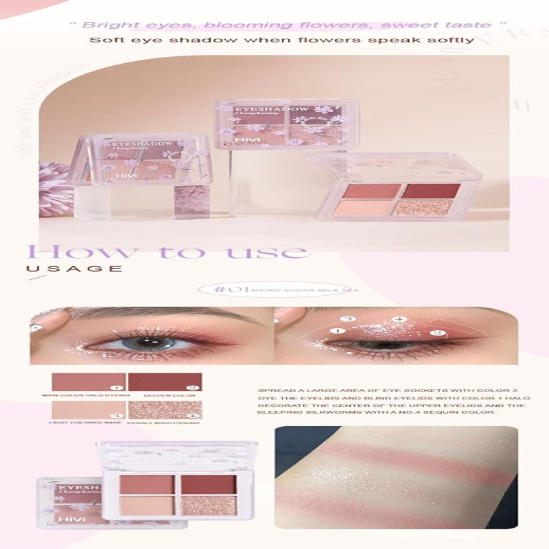 HiVi Flower Language Light Time Beauty Combo Pack Set | Makeup kit Palette 5 in 1 | Lipstick Set with Blusher Concealer Eyeshadow & Eyebrow Pencil | Long-Lasting Lip Glaze | Multi Use Concealer | Precision Eyebrow Pencil | Eyeshadow Palette | Pink Blush for Cheeks | Complete Set for Face Makeup