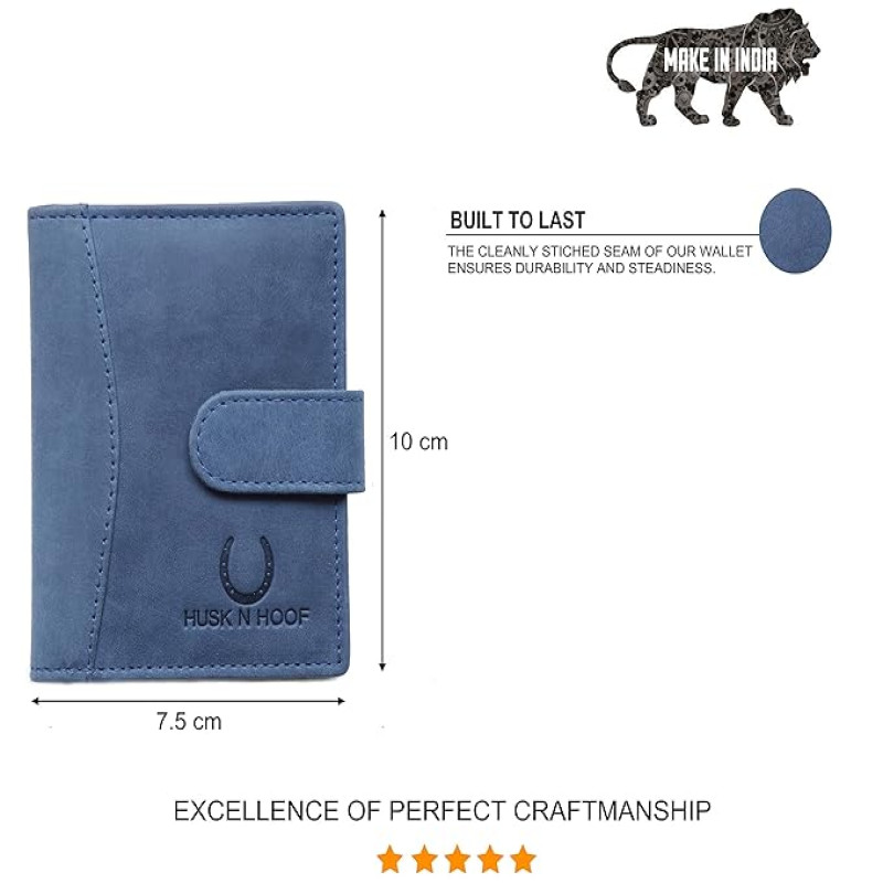 Husk N Hoof RFID Protected Leather Credit Card Holder Wallet for Man Women | Card Holder for Men Woman | Blue (20 Card Slots)