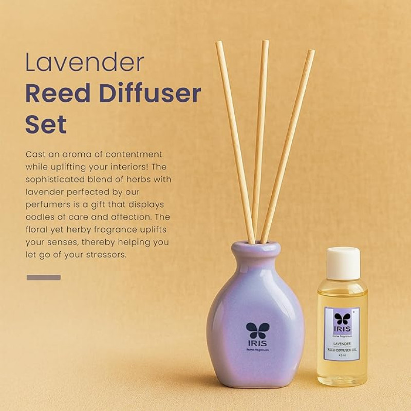 IRIS Home Fragrance,45Ml Lavender Reed Diffuser Set |Free 6 Reeds Sticks of 9"|Stress Relief & Aromatherapy |Long-Lasting,Smoke-Free Air Freshener for Home,Bedroom and Office | Ideal for Gifting