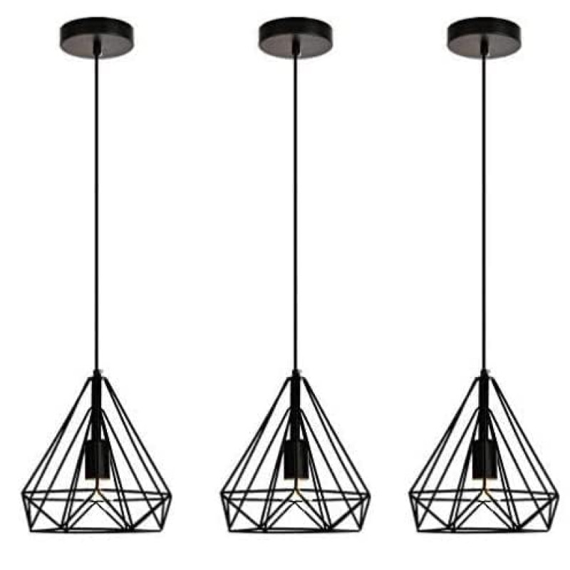 JACKAL Diamond Cluster Pendant Light (with Bulb) - Pack of 3, Hanging Ceiling Light with Braided Cord | Chandelier for Home, Living Room, Indoor, Outdoor & Bar | Jhumar Lighting - Black