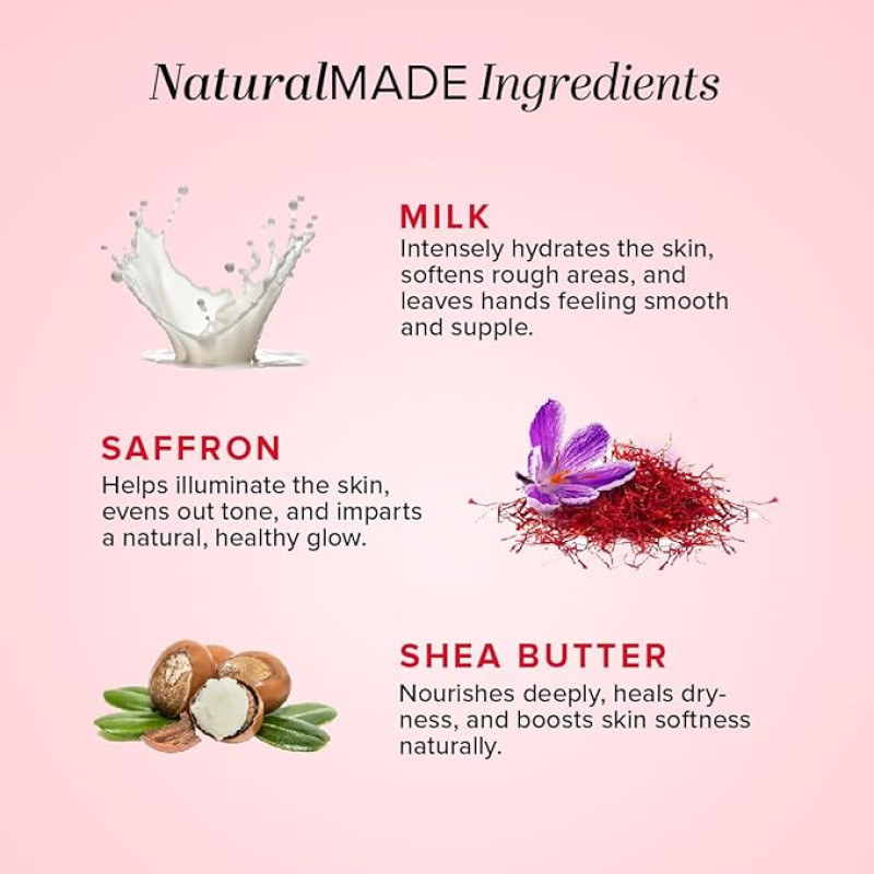 Active Ingredients | Saffron, Goat Milk, Sheabutter, Prunus Amygdalus (Almond) Oil, Olive Oil, Simmondsia Chinensis (Jojoba) Oil, Wheatgerm Oil, Grape seed Oil, Jaiphal Oil (Myristica Fragrans), Brassica Junica Oil, Bees Wax, Azadirachta Indica (Neem) Oil, Apricot Oil, Vitamin E, Helianthus (Sunflower) Oil.Saffron, Goat Milk, Sheabutter, Prunus Amygdalus (Almond) Oil, Olive Oil, Simmondsia Chinensis (Jojoba) Oil, Whea… See more |