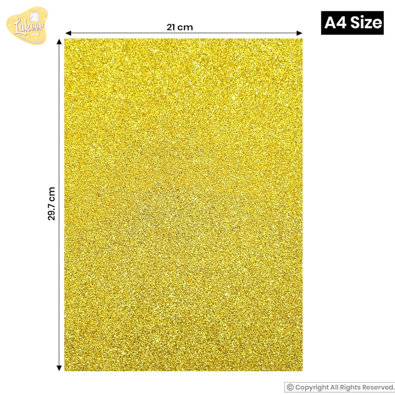 Package Contains Pack of 10 A4 Size Glitter Foam Sheets. 10 Colors and Designs.