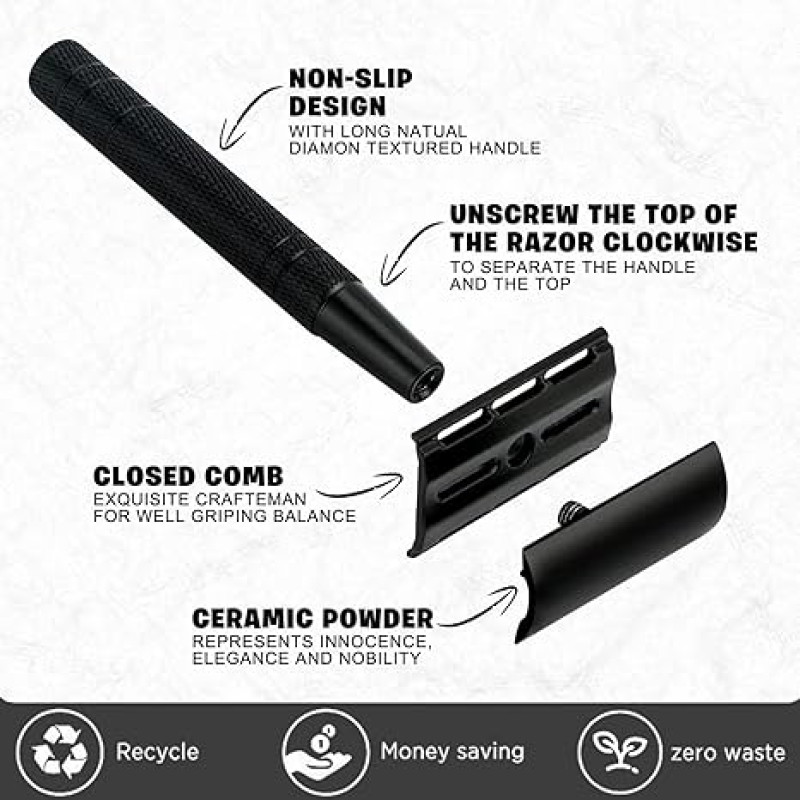 Durable Material‘: The Shaving Razors Is Made Of High Quality Zinc Alloy And Aluminum Handle Material, Sturdy And Durable To Use.