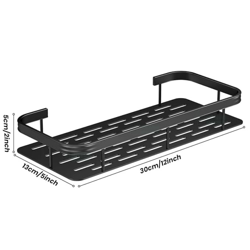 Misamo Enterprise Plastic Bathroom Wall Shelf Organiser, 30 cm, Adhesive Mount Storage Rack with Installation Kit (Shelf-Black, Pack of 2)