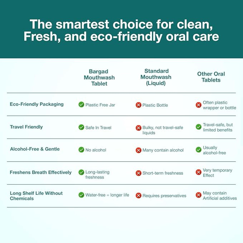 ♻️ Eco-Conscious & Sustainable : Ditch bulky plastic bottles! Bargad Mouthwash Tablets come in compact, recyclable packaging, helping reduce plastic waste while offering a zero-waste alternative to traditional mouthwash. Better for you, better for the planet.