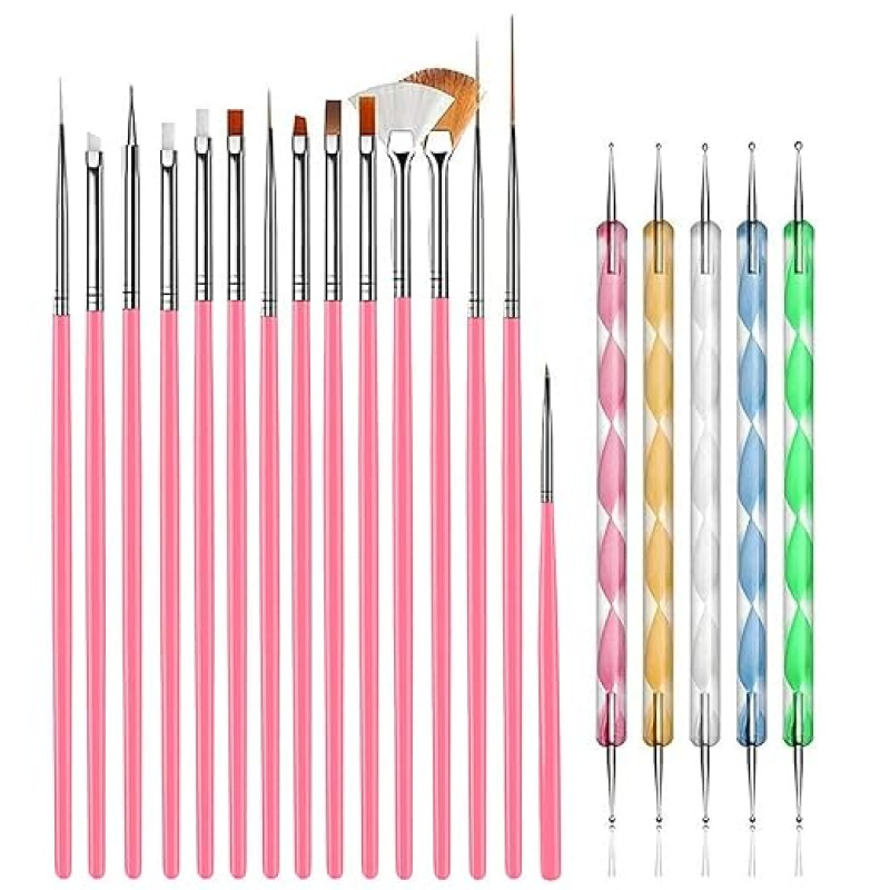 NAILWIND 20 pcs Nail Art Brushes, Nail Art Design Painting and Drawing UV Polish Brush Tool Kit, 15 pcs Nail Art Brushes Kit with 5 pcs Nail Dotting Pens, Multicolored