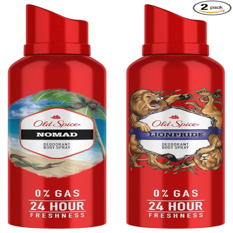 Old Spice Deodorant Pack (Lionpride + Nomad), No Gas 24 hour Long Lasting Freshness, Deodorant Perfume Body Spray For Men, 140ml each, Pack of 2