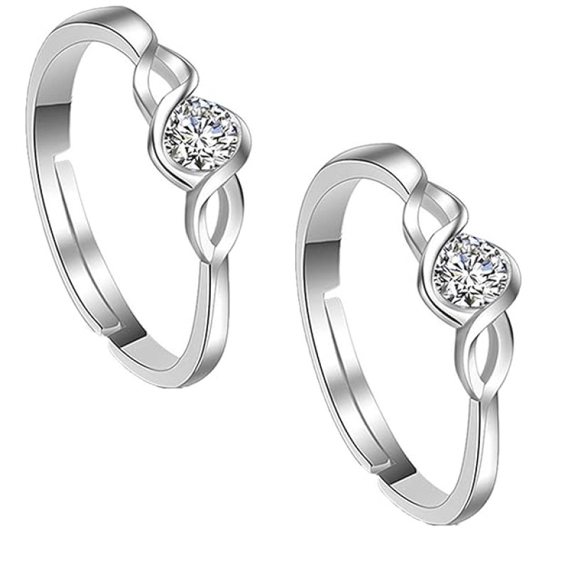 Om Jewells White Alloy Rhodium Designer Adjustable Toe Ring for Women - Combo of 3