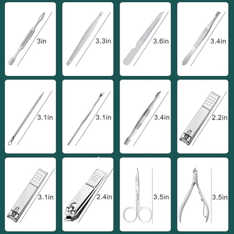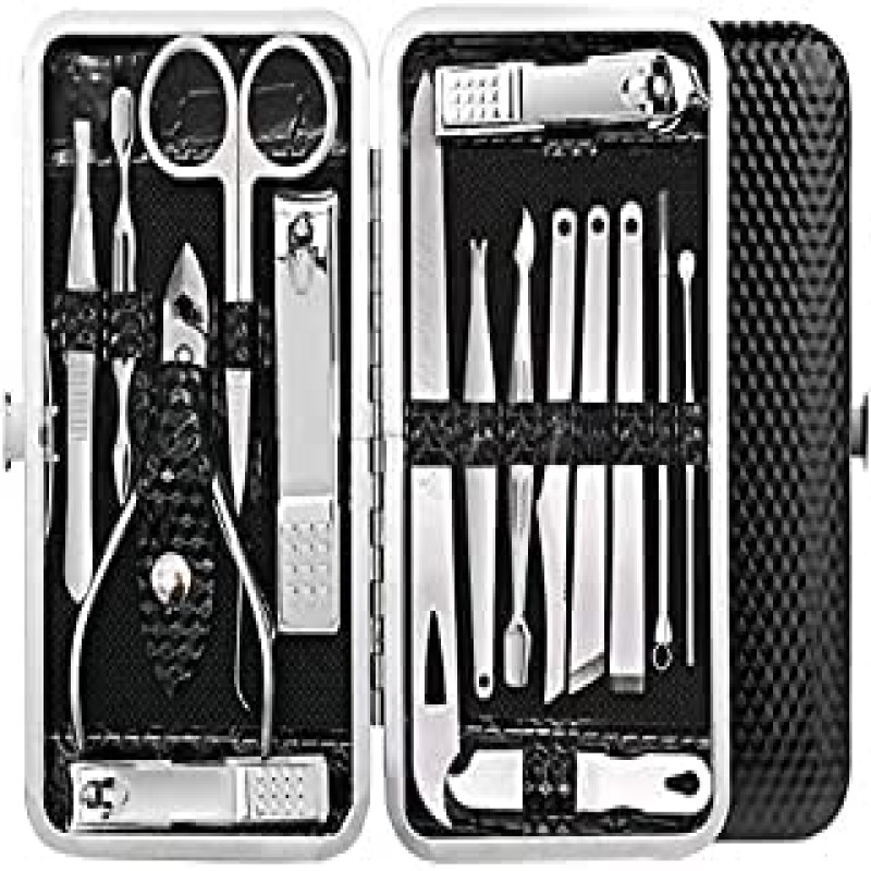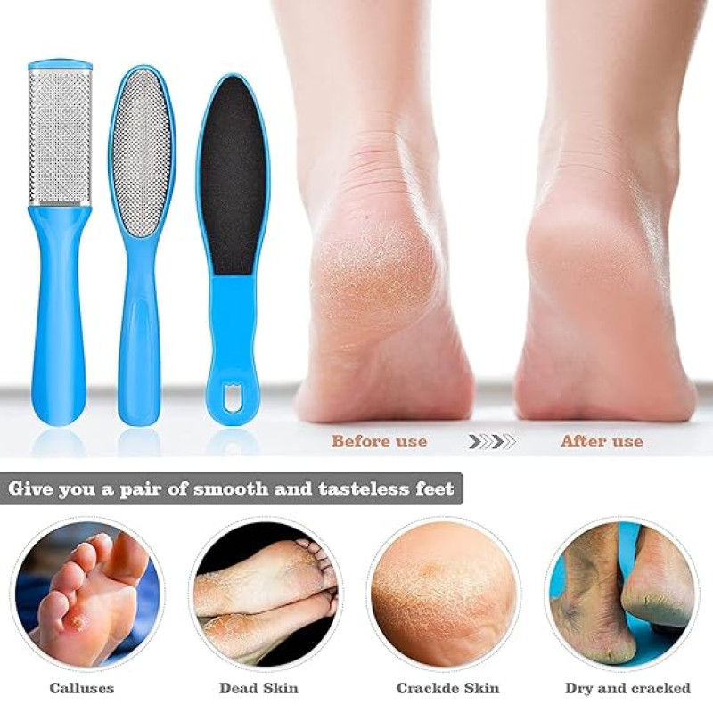 23 in 1 Manicure & Pedicure Kits ▶ All tools used for daily foot care and nail trimming are made of professional stainless steel and ABS materials. They are easy to clean, do not rust, washable, and wear-resistant. Say go bye to dead skin and calluses, and give you a perfect pair of odorless feet