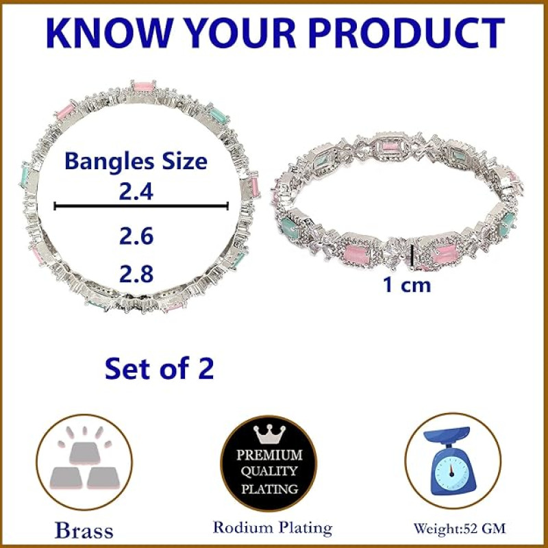 What You Get:- Set Of 2 Rhodium-Plated Silver Toned Bangles has AD Square Shaped studded, secured with Slip-On closure.