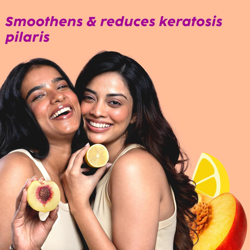 Enhanced Skin Radiance: Peaches & Lemon Extract, rich in Vitamin C, reduce pigmentation and uneven skin tone, leaving skin brighter and more radiant.