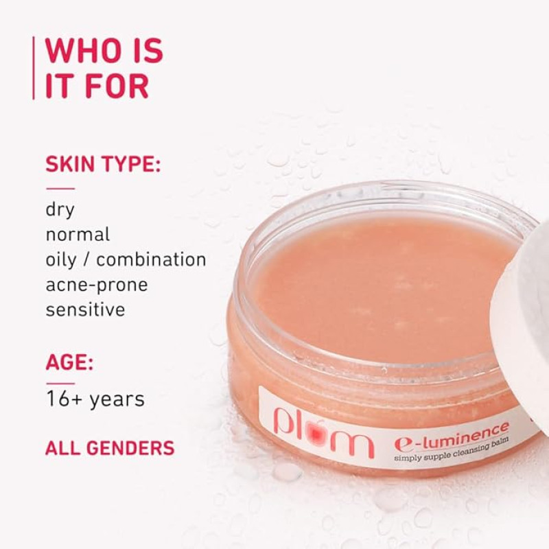 Plum E-Luminence Simply Supple Cleansing Balm | Non-Drying Supple Cleansing Balm with Vitamin E | Makeup Remover | Suitable for Normal, Dry & Combination Skin | 100% Vegan & Sulfate-Free