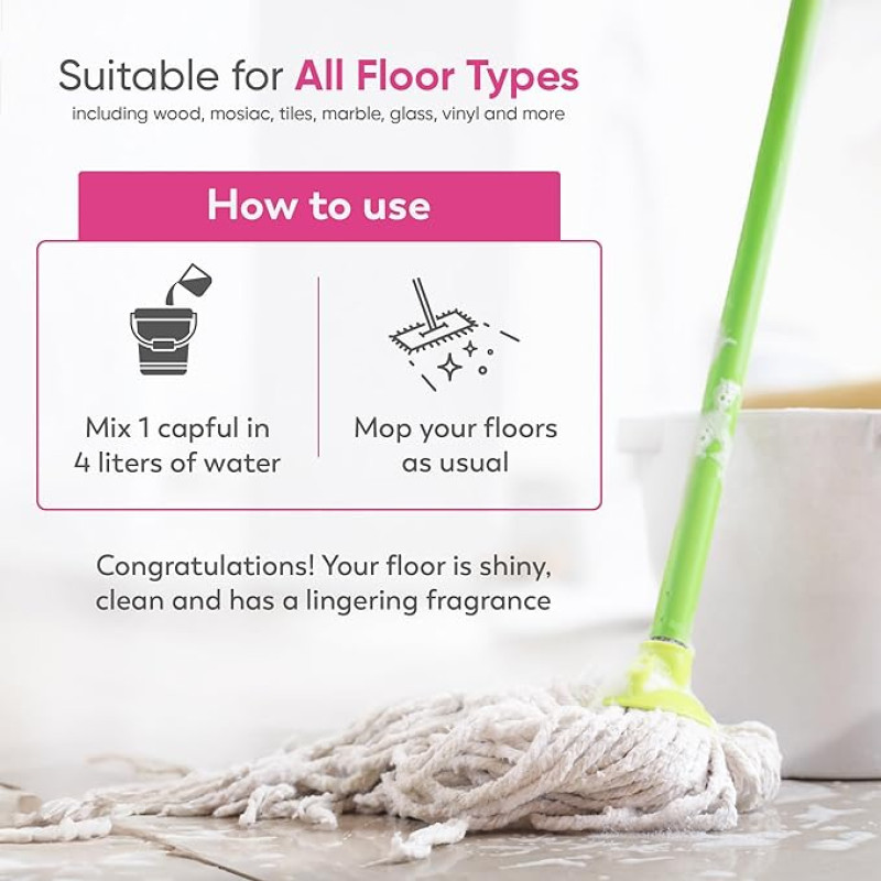 PUER Floor Cleaner Floral Fresh 1800ml Refill Pouch | Streak Free Shine Kills 99.9% Germs with Toxic Free Cleaning & Quick Dry Technology | Ideal for All Floor Types including Wood, Tiles & Marble