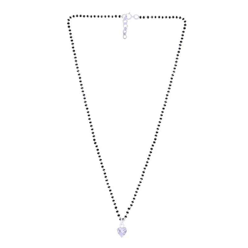 Sterling Silver Solitaire Heart Mangalsutra Tanmaniya Pendant with Chain For Women