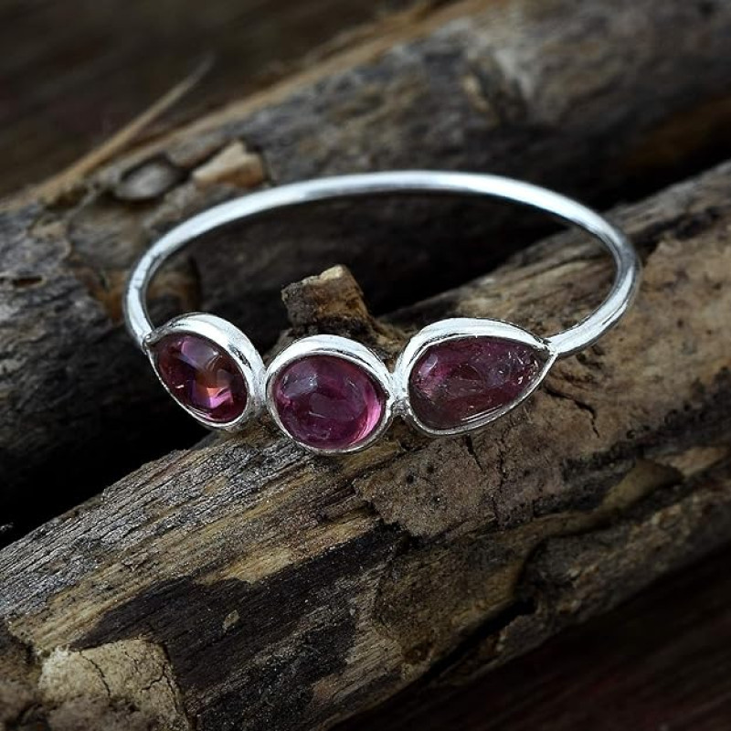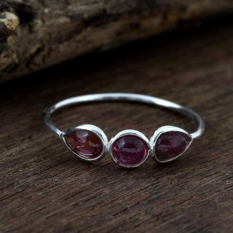 Product Details – Expertly handcrafted in Pure 925 Sterling Silver with three elegant garnet gemstones (4 mm & 6x4 mm). Designed with a sleek profile – length 1.6 cm, width 0.5 cm – and ultra-lightweight at just 0.9 grams for everyday comfort.