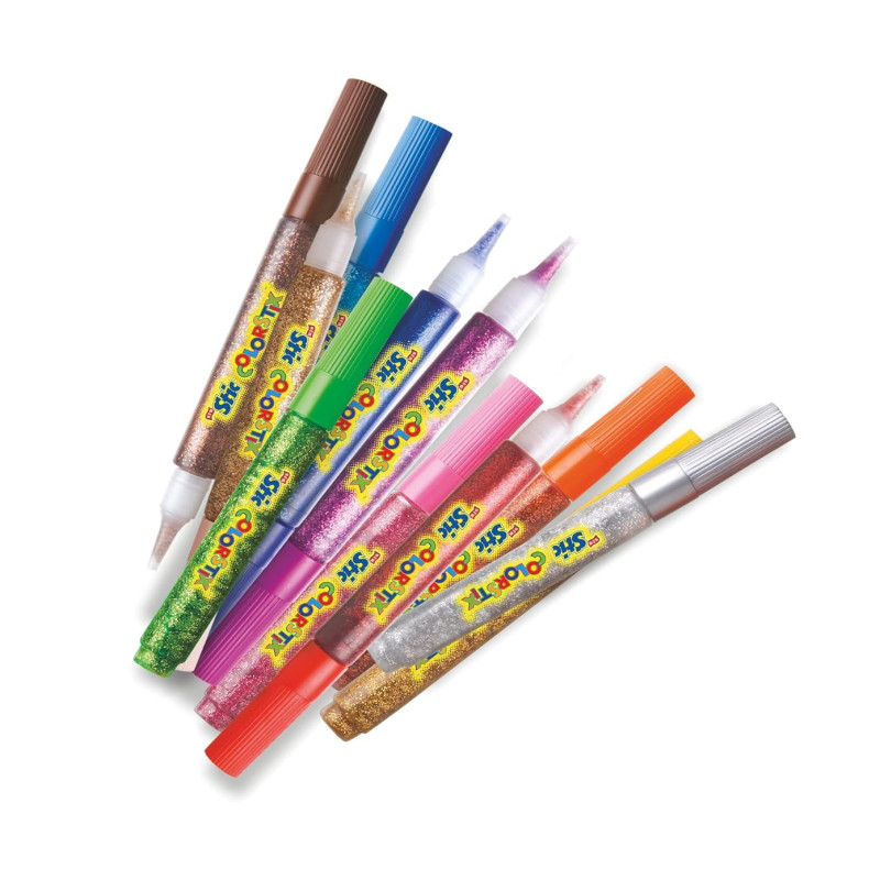Stic 10 Shades Glitter Glue Pens Craft Art Slime Resin Project Work Gum Sparkle Elmer stick Colour Kids Decoration Shimmer Decorate Birthday card Toy Clear Non toxic Tip Adhesive School Greeting cards