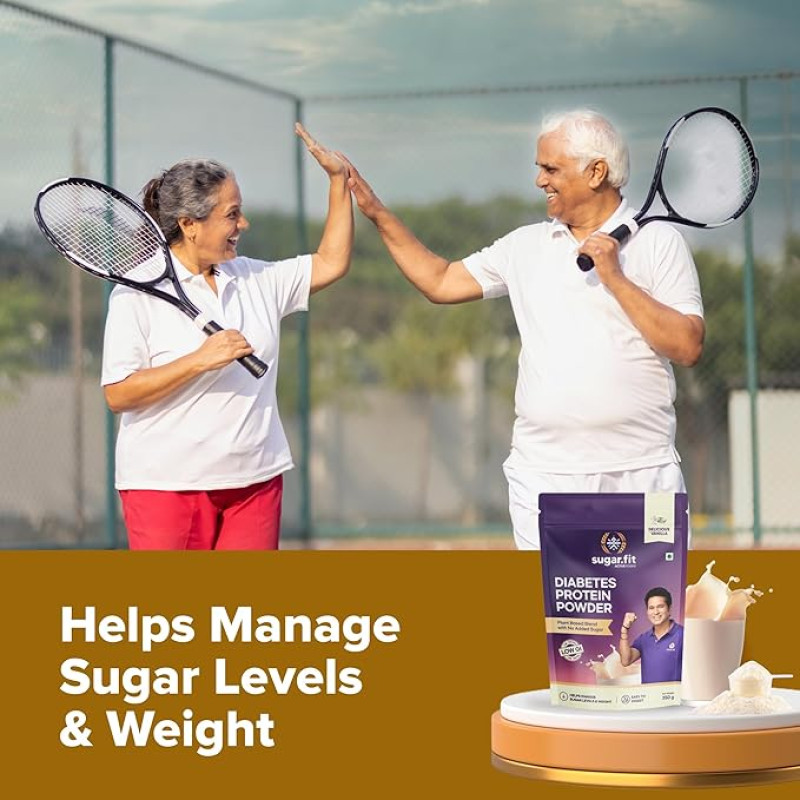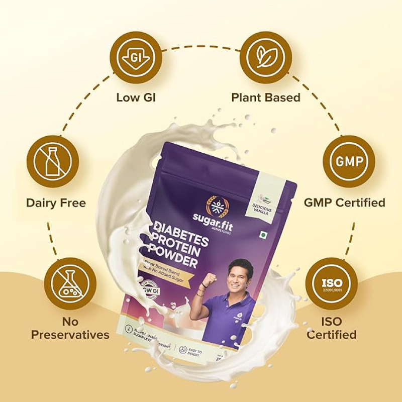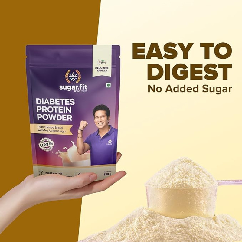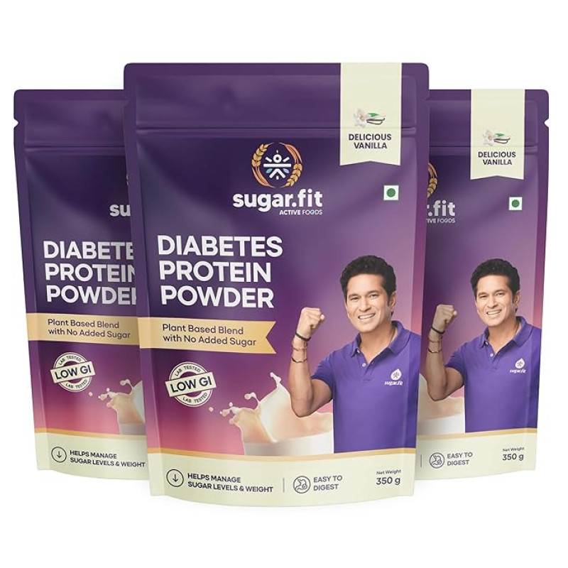 sugar.fit Diabetes Plant Protein Powder - 350g Vanilla (Pack of 3), Pea Protein Isolate, Low GI Diabetic Friendly Plant Based, Sugar Free Supplement for Managing Blood Sugar & Weight for Men & Women