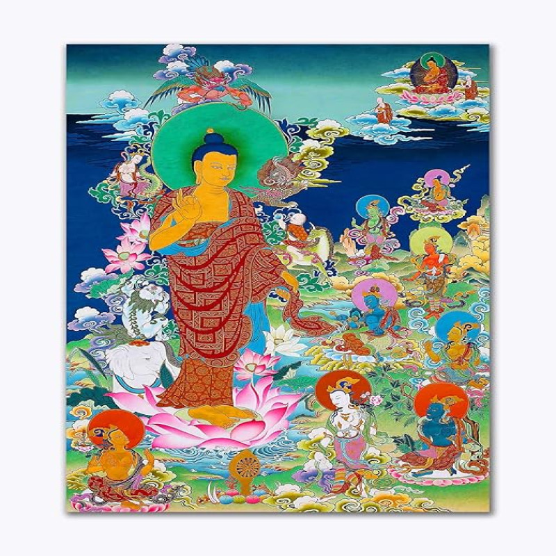 Tamatina Thangka Canvas Painting | Lord Buddha on Lotus | Buddhism Art| Traditional Art Painting for Home décor|Size - 13X9 Inches.h462