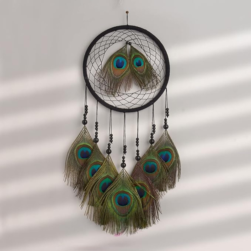 Artistic Design: Handcrafted with intricate details, this dream catcher features a stunning peacock feather design, perfect for adding a touch of cultural elegance to your space