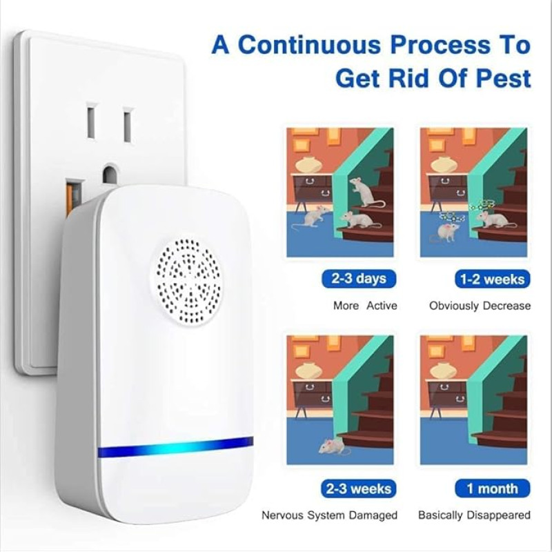 HOW TO USE AN ULTRASONIC REPELLER IN YOUR HOME - Pest repellents are simple to use. All you do is plug pest repellent ultrasonic in an electrical outlet and it will start to repel the pests when the blue night light is on. The repeller should be placed in a location where its noise will not be affected by walls and furniture. It is recommended to install this pest repeller at between 30-50 inches away from the floor for flying pests and 10-30 inches from the ground for crawling pests.