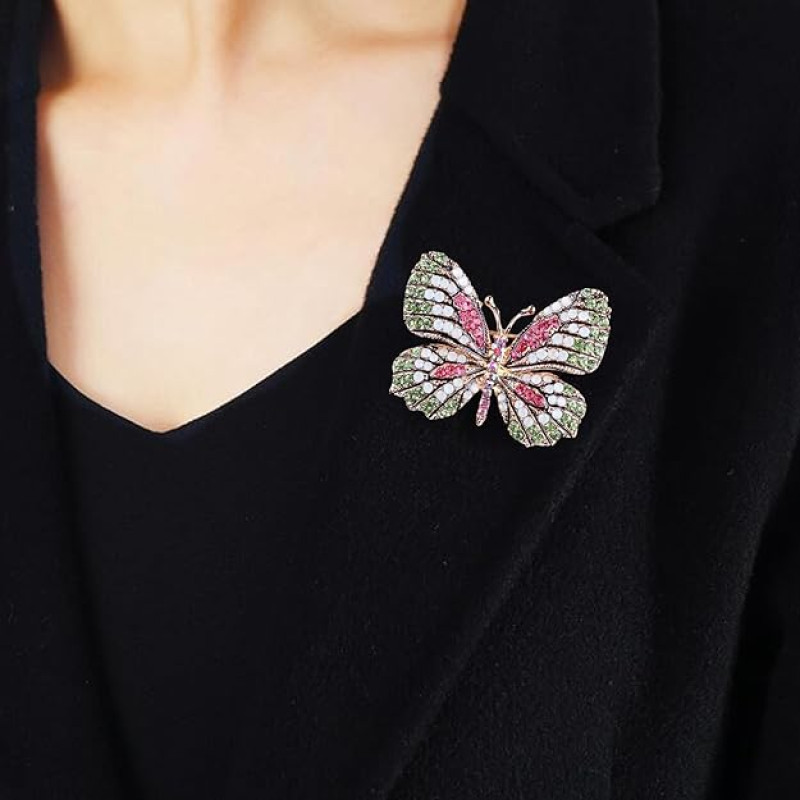 ✓ Elegant Butterfly Design: Features a beautifully crafted butterfly shape adorned with sparkling multicolour rhinestones that add a vibrant and graceful touch to any outfit.