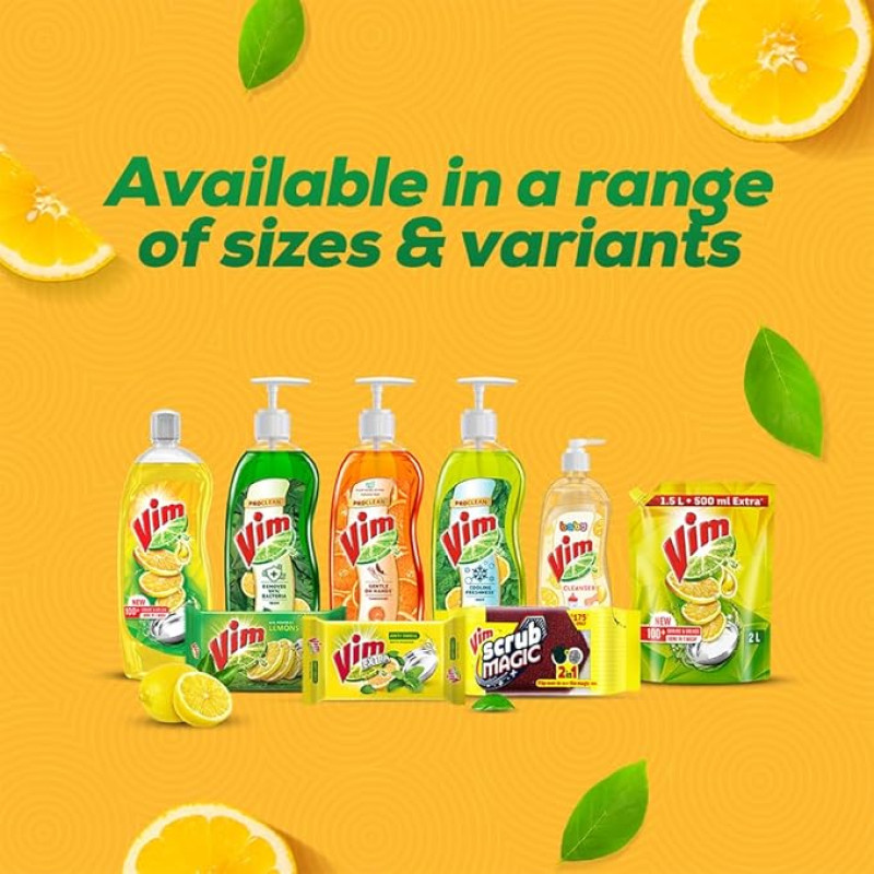Vim Fresh Lemon Fragrance Dishwash Liquid Gel 2L Refill Pack|| Leaves No Residue|| Grease Cleaner For Utensils - Liquid Kitchen Soap Super Saver Offer