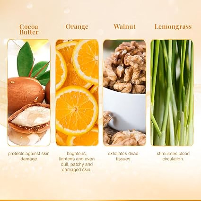 The Hand & Foot Scrub contains Walnut & Lemongrass that helps remove dead skin cells.