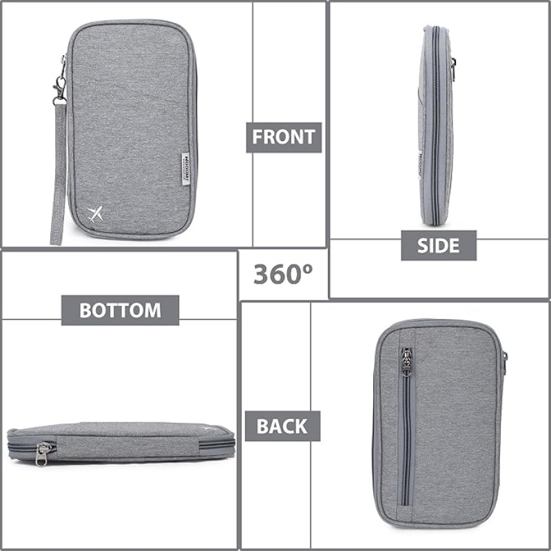 Wooum Passport Holder for Family, Passport Case Protection, Water Resistant Passport Bag for Men & Women, Travel Document Organizer, Passport Cover, Credit Cards Case for Travel, Light Grey