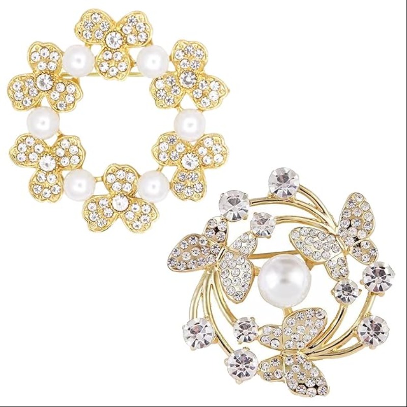 2Pcs Brooch Pin for Women, Elegant Butterfly and Floral Design, Versatile Accessory for Wedding, Business, and Daily Fashion, Gift for Women