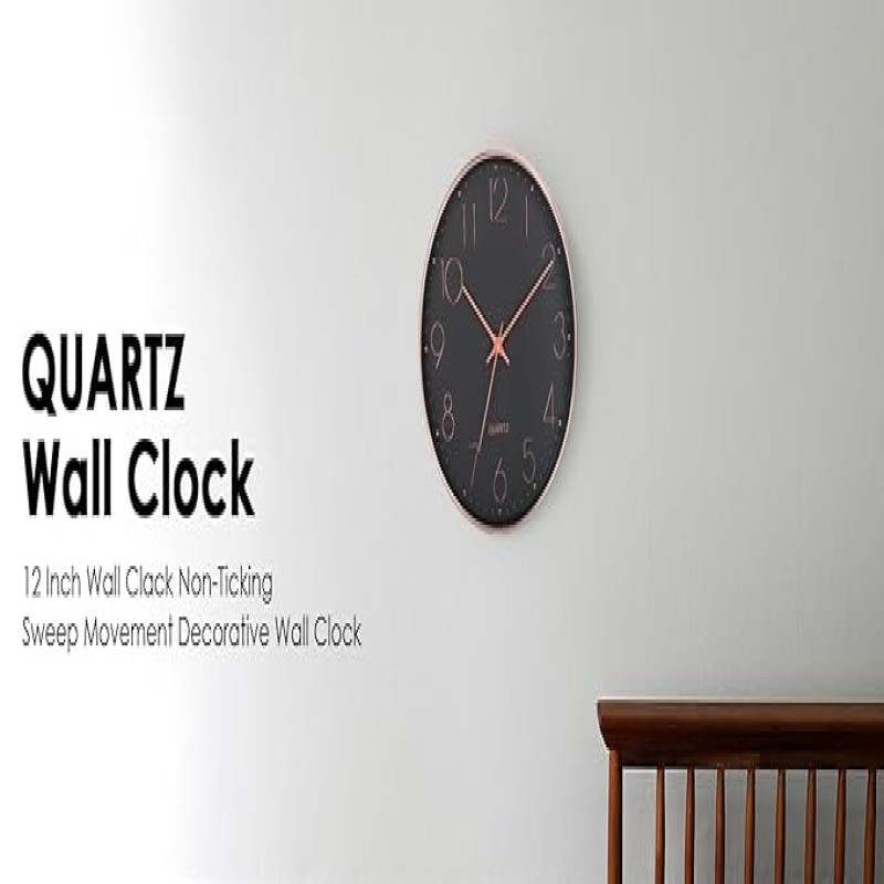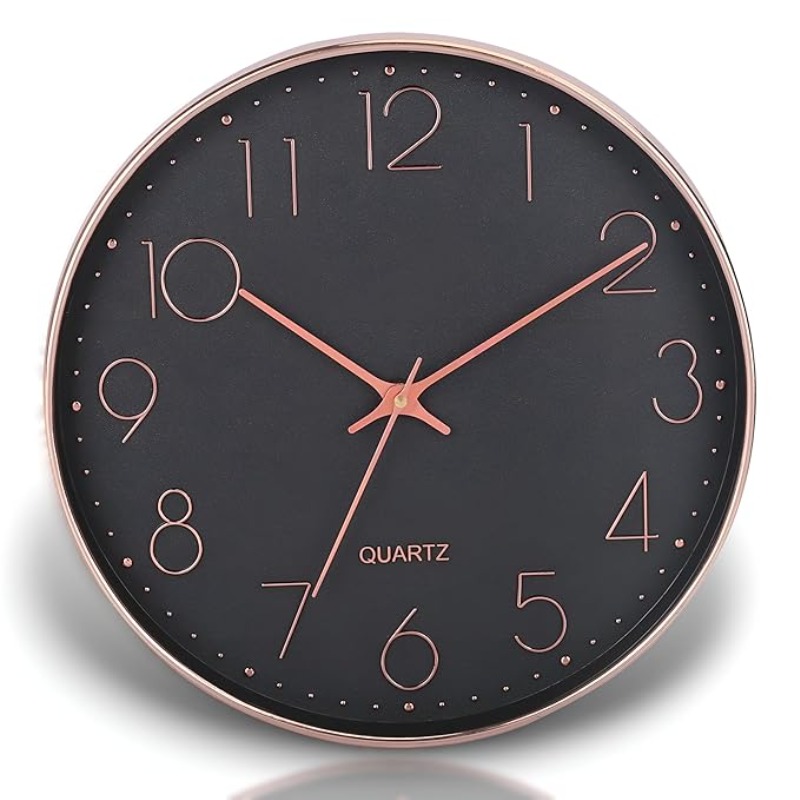 Amazon Brand - Umi 12 Inches Non Ticking Silent Quartz Round Designer Plastic Bold Number Wall Clock for Home Kitchen Bedroom Hall Living Room Office (Full Figure_Black)