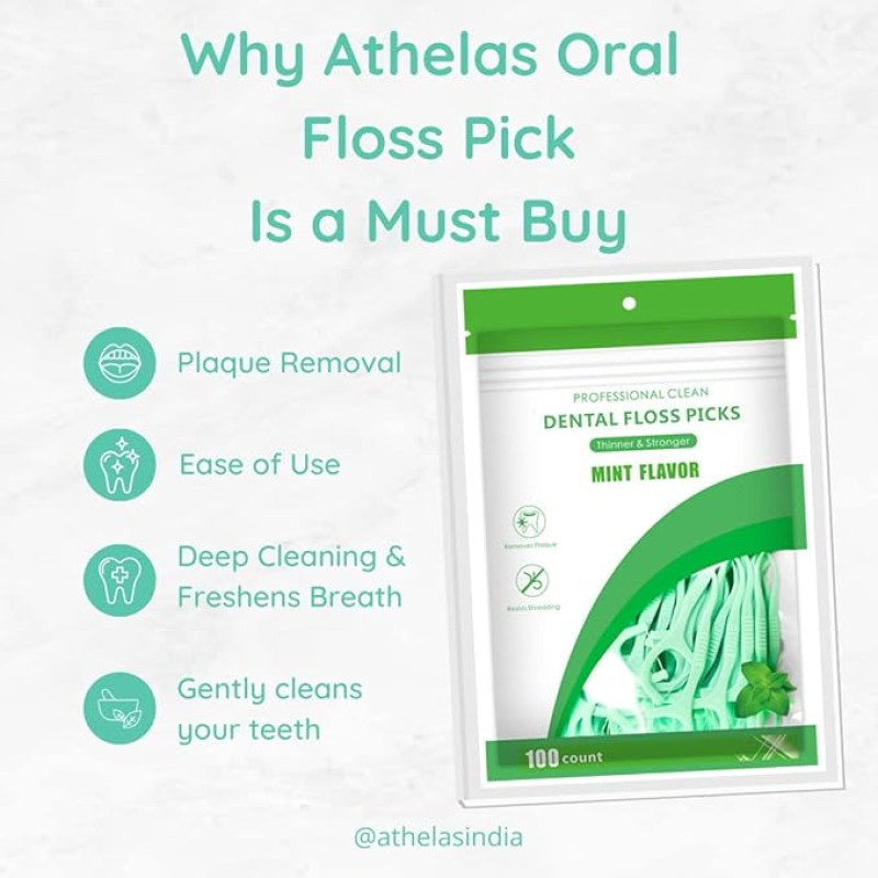 Athelas Pack of 100 Fresh Mint Dental Floss Picks | Dentist Designed & most convenient teeth Flosser for fresh Breath & complete oral plaque removal (Fresh Mint)
