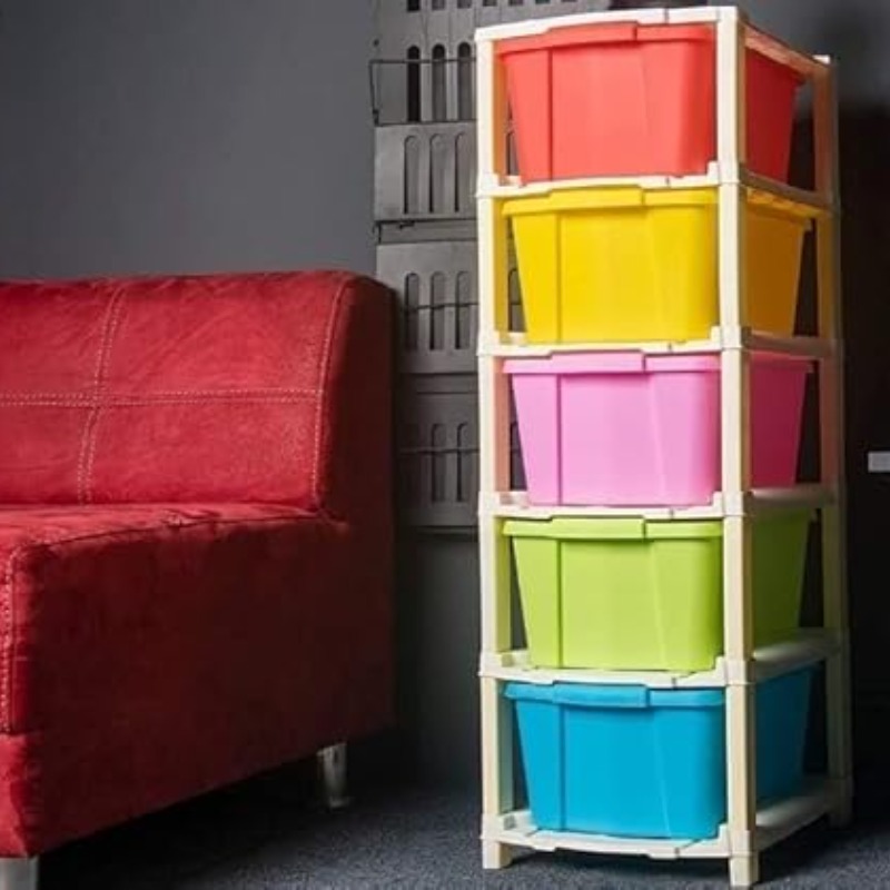 AVZEEGO 5 Xl Plastic Modular Drawer System For Home, Office, Hospital, Parlor, School, Doctors, Home And Kids, Product Dimension When Assembeled (27Cmx32Cmx85Cm)(5Xl-Classic), Multi