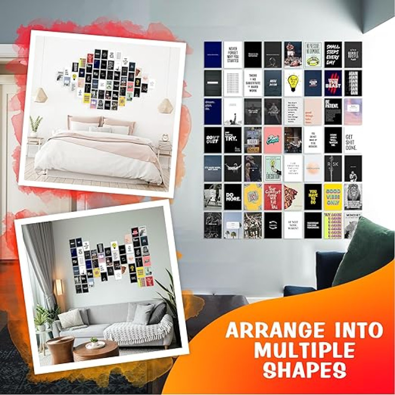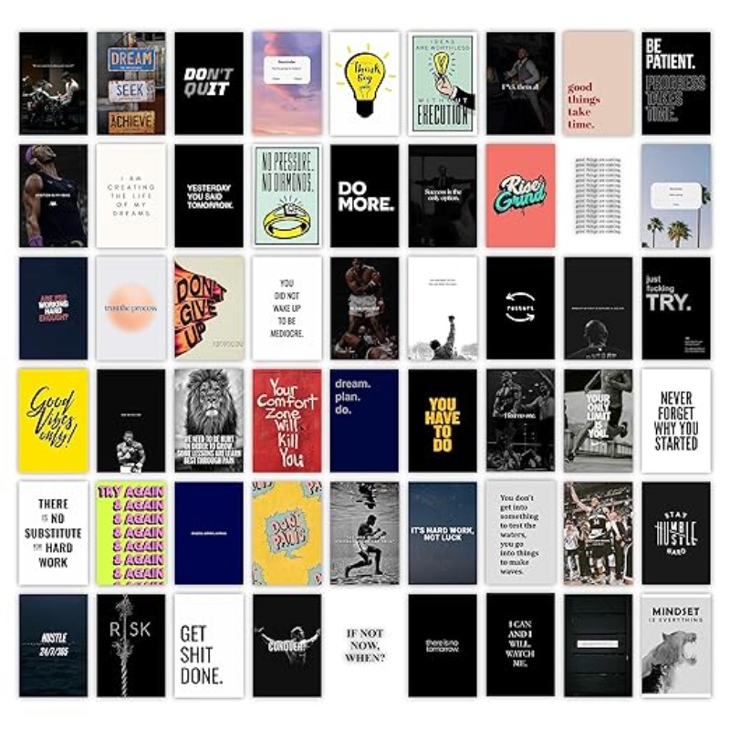CodersParadise Pack of 54 Motivational Inspirational Wall Collage Kit Posters - 4 x 6 Inches Posters for Room Wall Decoration of Bedroom, Office, Living room, Dorm room - Glue Dots Included, Cardstock