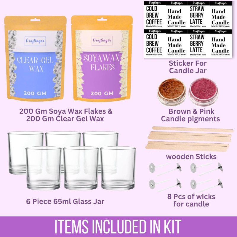 Craftinger DIY Candle Making Kit - Complete Set With 400Gm SOYA Wax, Gel Wax, Jars, Wicks, Pigments, And Labels For Adults & Beginners,Multicolor