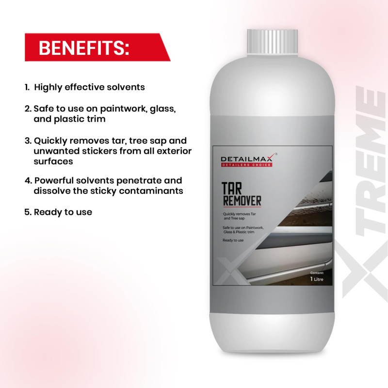 DETAILMAX Tar Remover 1L – Heavy-Duty Tar, Glue, Bug & Adhesive Cleaner for Cars | Automotive Tar & Residue Remover for Body, Paint, Bumper, Chrome & Glass