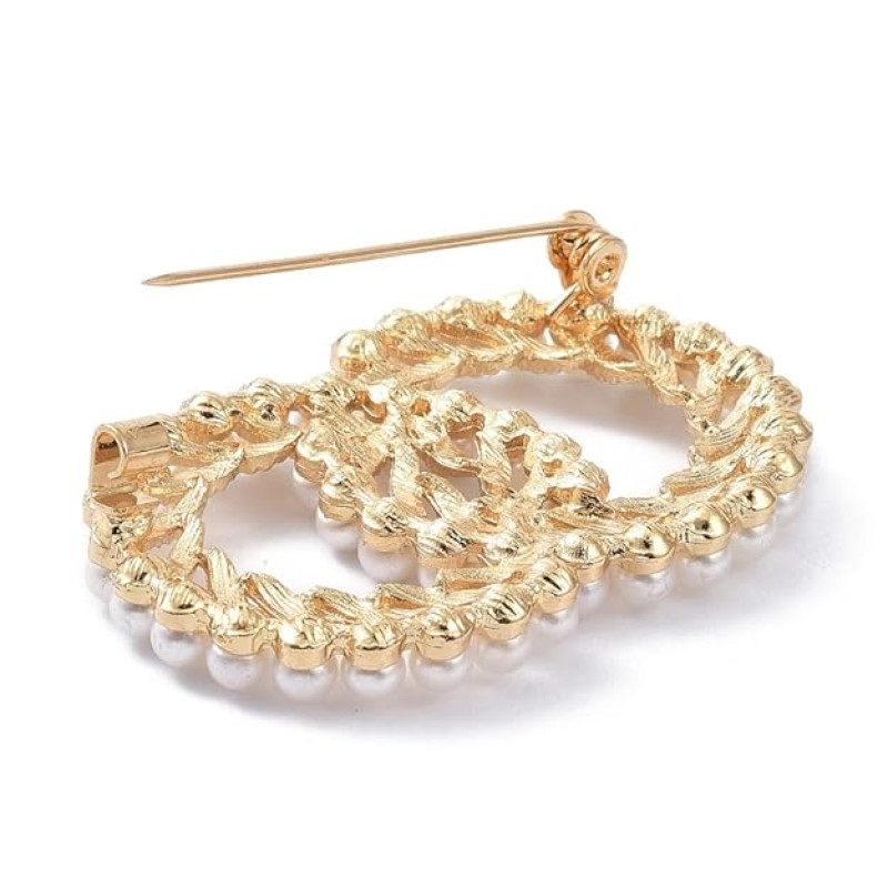 Gold Plated Pearl Studded Traditional Circular Brooch Cum Saree Pin for Women and Girls (Brooch0510) 1 Pc