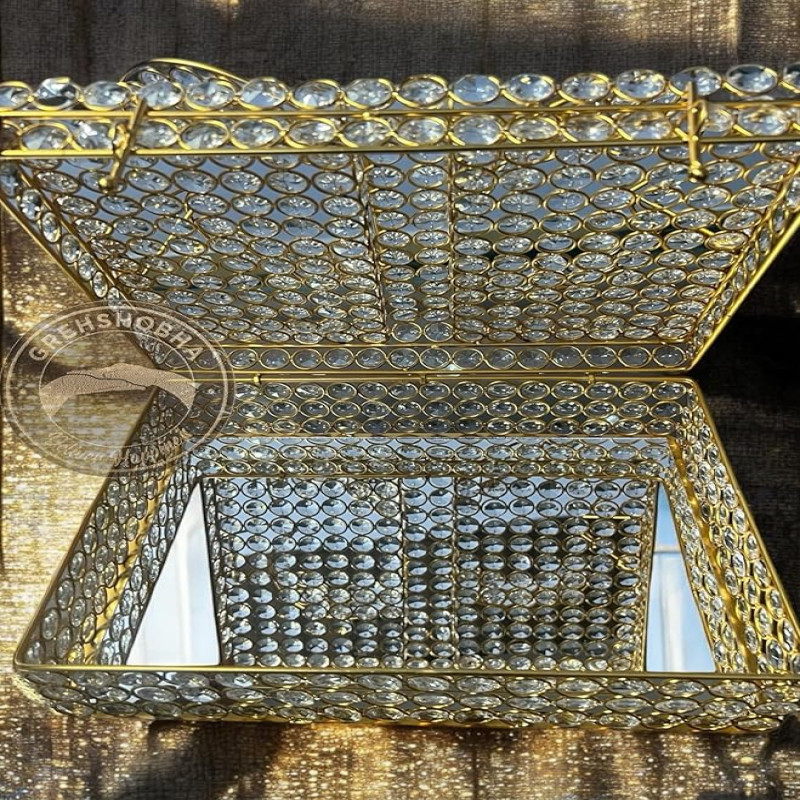 GREHSHOBHA Iron Frame Holy Quran Sharif Book Reading Holder Rihal Stand | Golden Toned with Crystal Glass Beads | Quran Holder for Bride & Gifting Purpose | Size: 12 Inch, Pack of 1