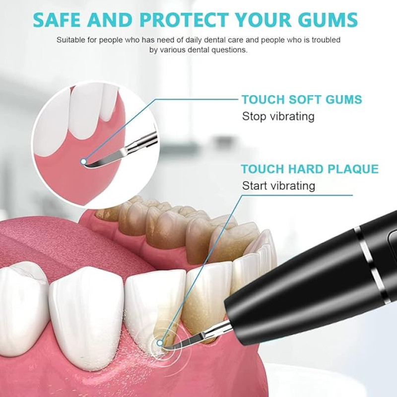 HANNEA® Teeth Whitening Kit Electric Tartar Remover with LED, Tartar Tooth Remover Cleaning Tool, 4 Replaceable Heads & 3 Modes Dental Care for Teeth Cleaning, Black