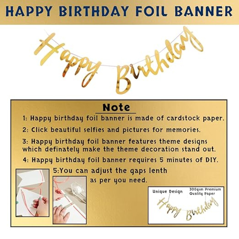 - EASY TO SET UP AND LATEST BIRTHDAY DECORATION DESIGN : This birthday decoration items is so easy to use and decoration will be top notch with the The Foil Happy Birthday Banner. The White and Golden metallic Balloons create a complete set for your decorations. This kit also comes with curtain nets for birthday decoration which can be a great way to top it all off along with the included in the full birthday decoration kit.
