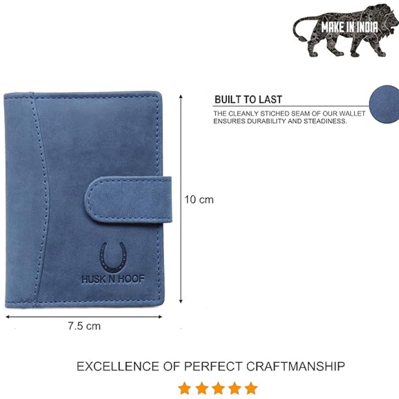 Husk N Hoof RFID Protected Leather Credit Card Holder Wallet for Man Women | Card Holder for Men Woman | Blue (20 Card Slots)