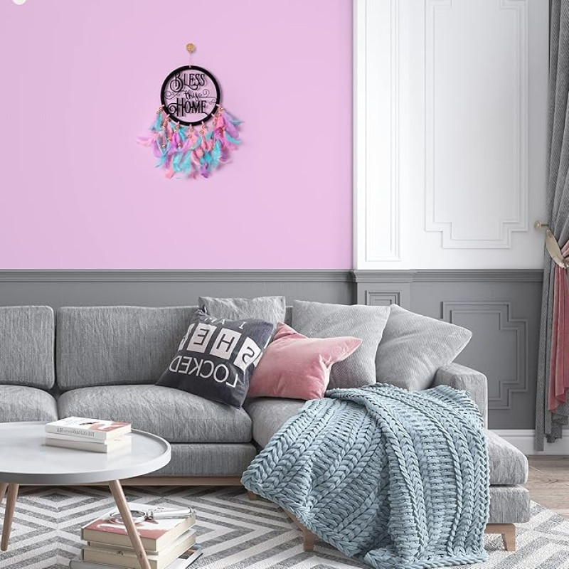 ILU Metal Dream Catcher Bless This Home, Wall Hangings, Nursery, Crafts, Home Décor, Office, Handmade For Bedroom, Balcony, Garden, Party, Café, Decoration, Wedding, Decorative, Pastel Multi Feathers