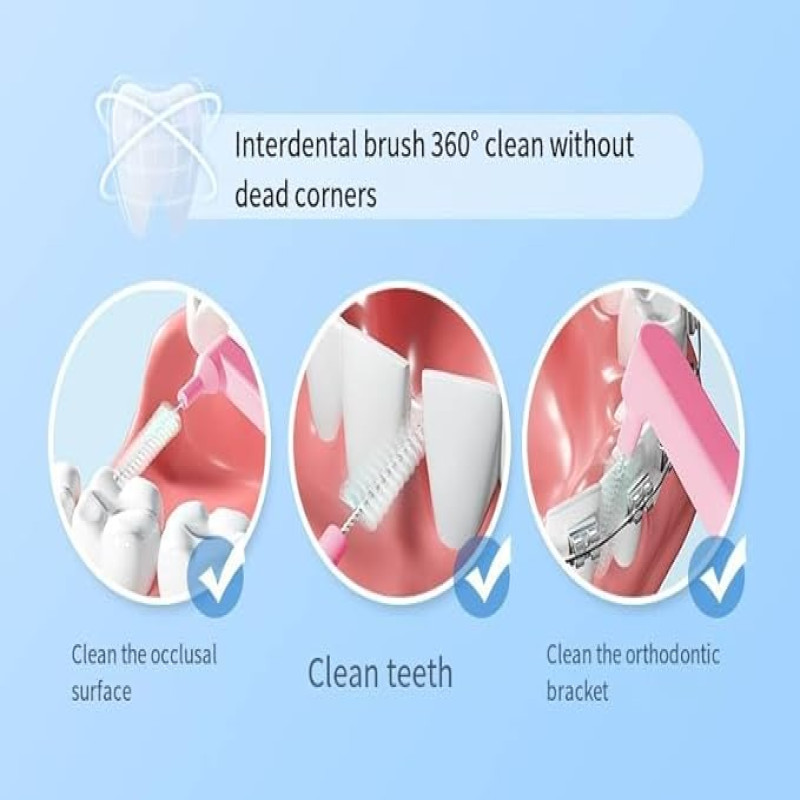 Inralimot L-Shaped Interdental Brushes Braces Toothbrush Short Handle,5 Different Sizes Dental Floss Brush Angled Interdental Toothpick,Manual,Adult,Colours-Multicolor,1 Count