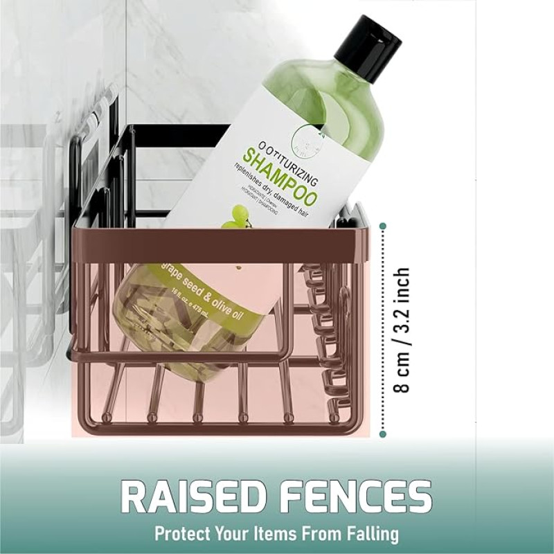 JD FRESH 5 in 1 Self Adhesive Shelf Organizer Combo/Metal Racks and Shelves for Wall/Stand for Bathroom Without Drill/Soap Holder with Tooth Brush Holder/Bathroom Accessories(Black)